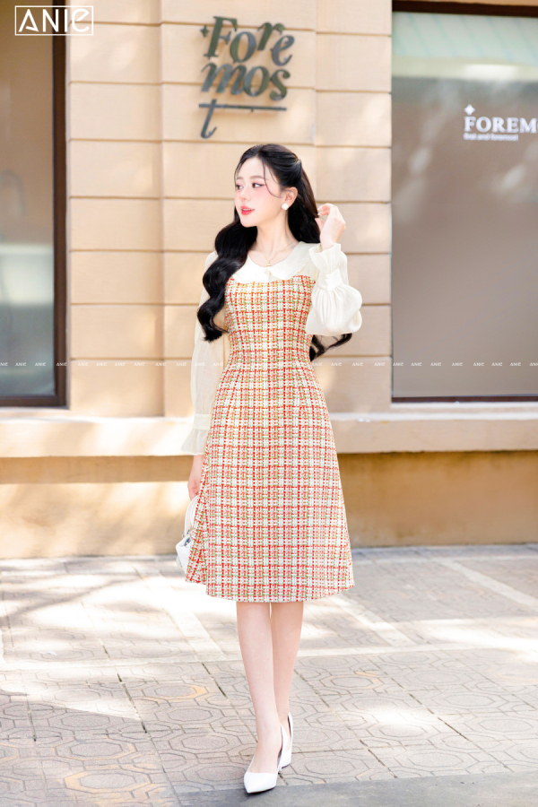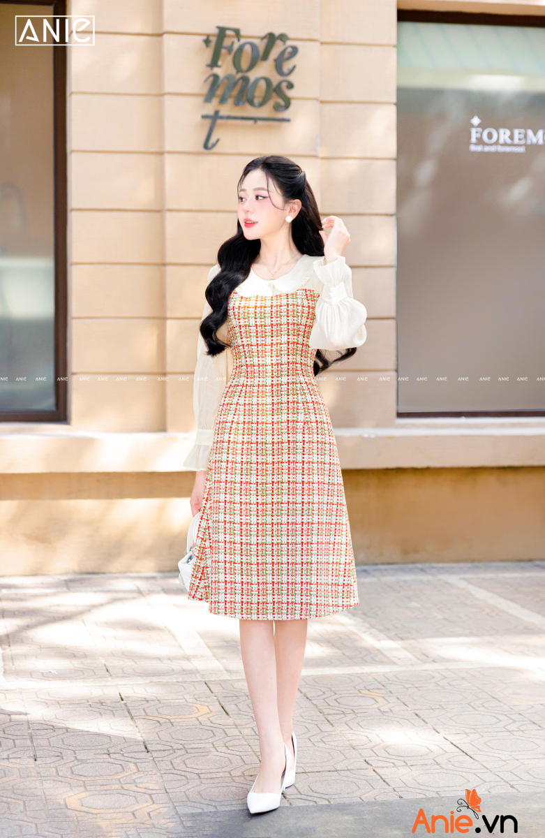 Đầm Cổ Nơ Xếp Ly Thanh Xuân