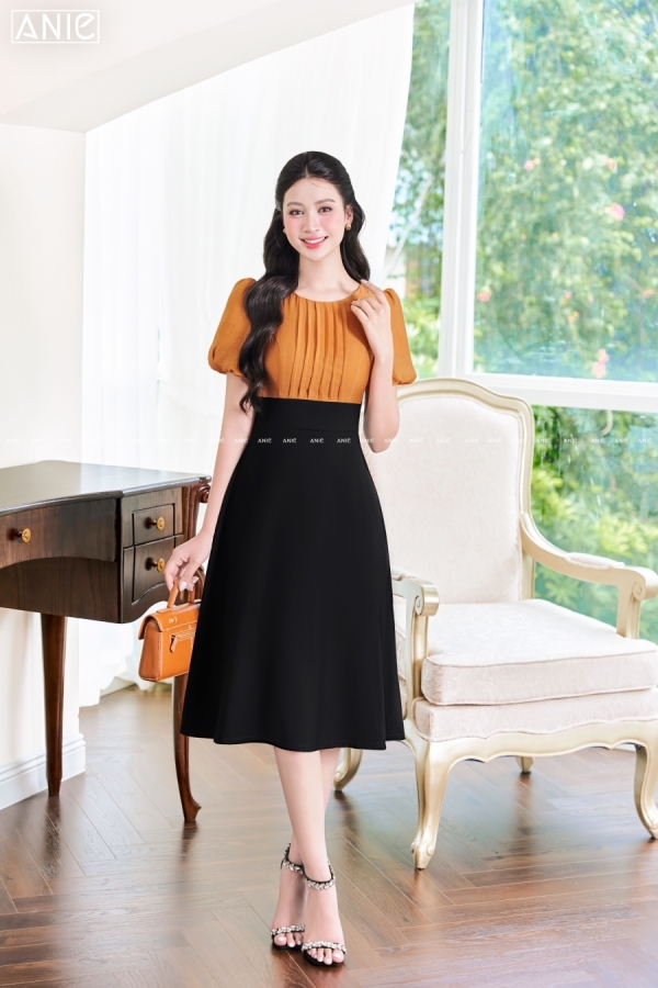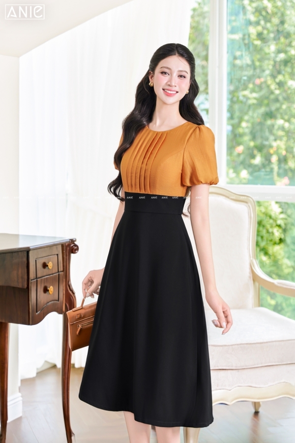 Đầm Liền Tay Bồng Sắc Cam - AN2588