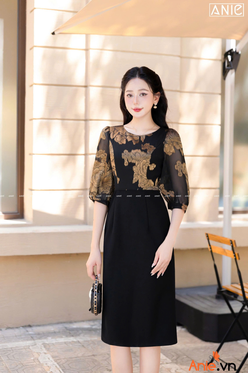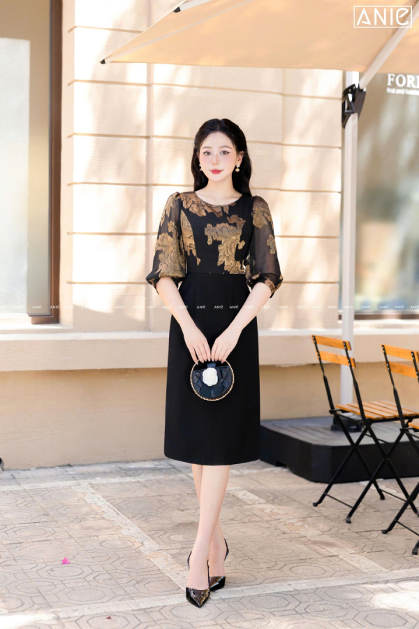 Sử dụng thướt tơ thêu hoa văn tone ánh nâu đồng bắt sáng mềm mại có lót, tùng váy mịn dày dặn co giãn form chuẩn, chiếc đầm được rã eo tạo dáng thon cao hẳn cho nàng mà còn có tone đen nữa thì quá SANG XỊN GỌN ĐẸP rồi ạ!