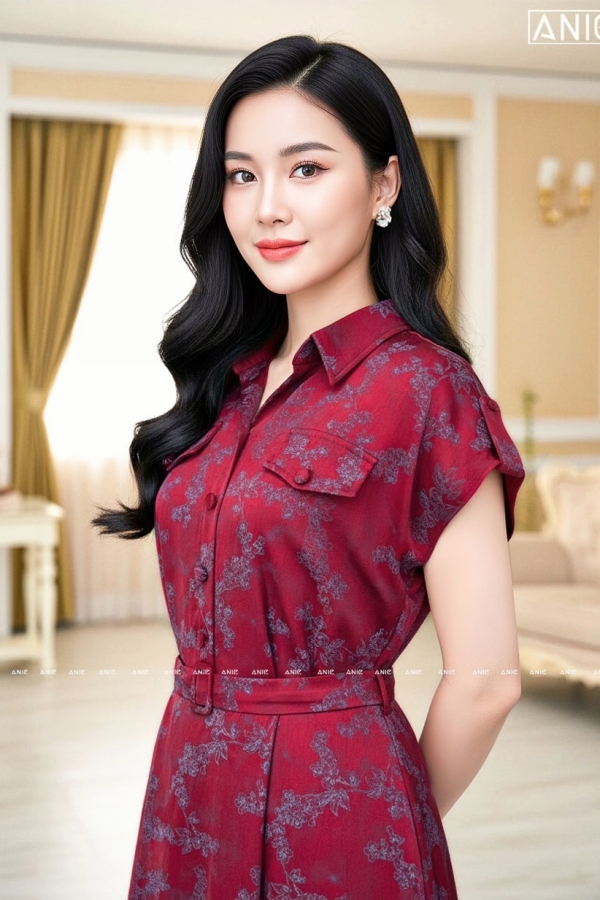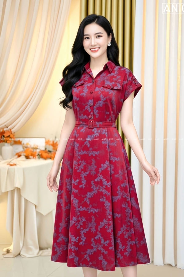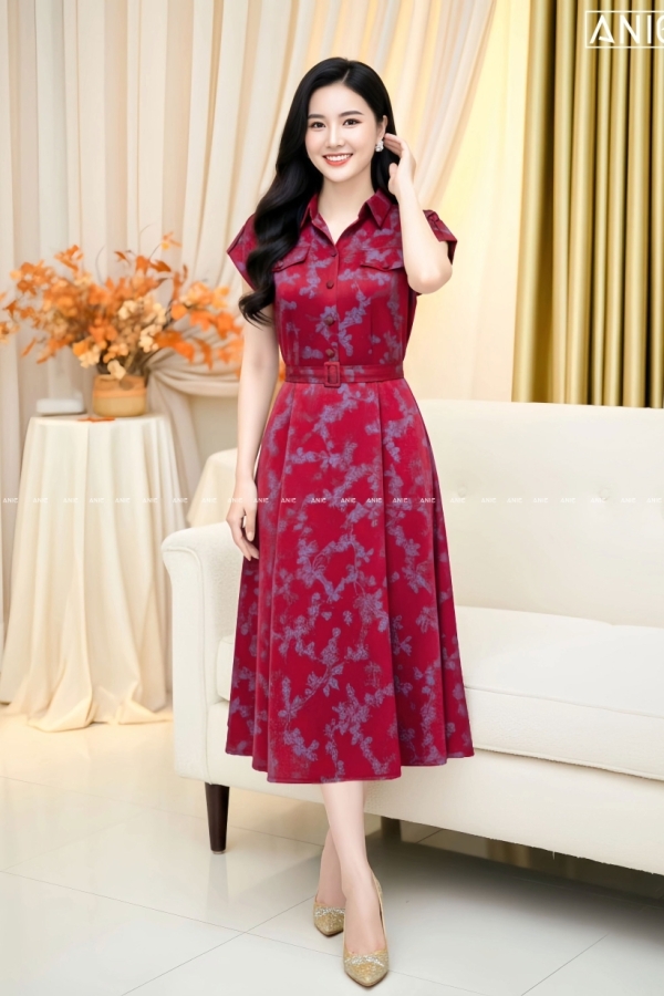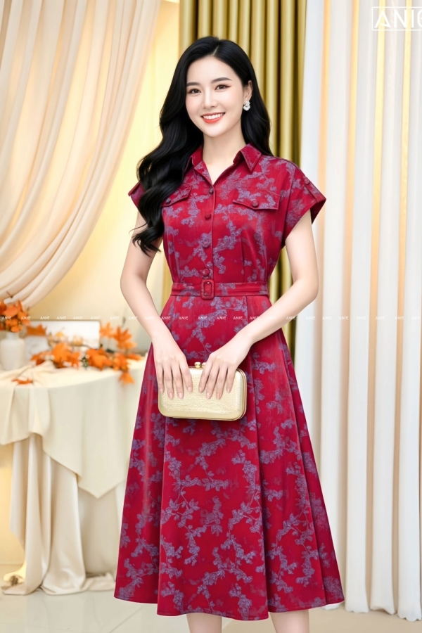 Đầm Lụa Đỏ Hoa Văn Classy - AN2584