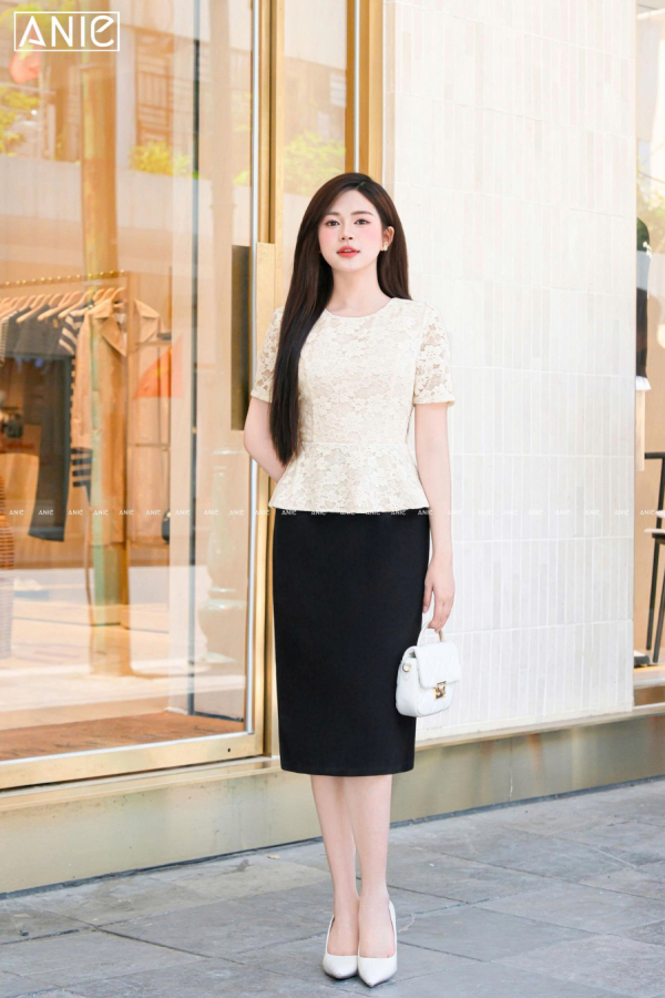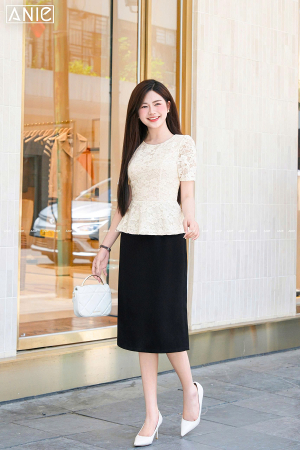 ANIE chọn thướt ren hoa mềm êm nâng niu dịu nhẹ lại thoáng mát, chân đầm co giãn dày dặn chuẩn form, chiếc peplum này mang theo vẻ đẹp nhã nhặn đơn giản nhưng ko giản đơn xíu nào
