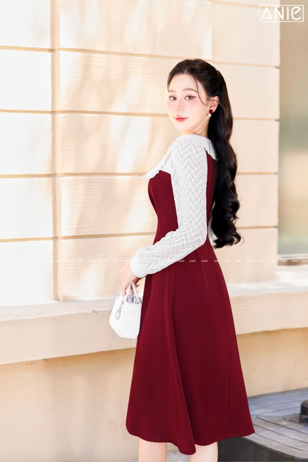 Đầm Ren Bông Trắng Đỏ Cherry - AN2593
