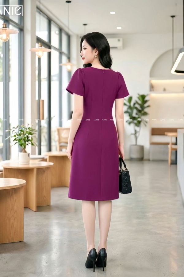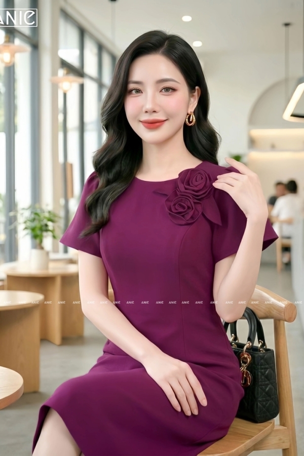 Đầm Suông Hồng Tím Hoa Vai - AN2648