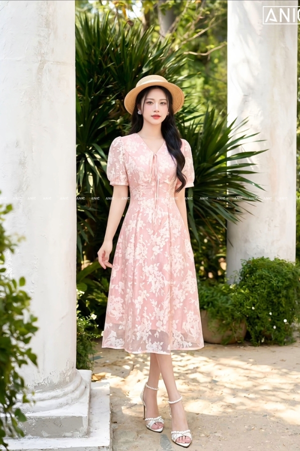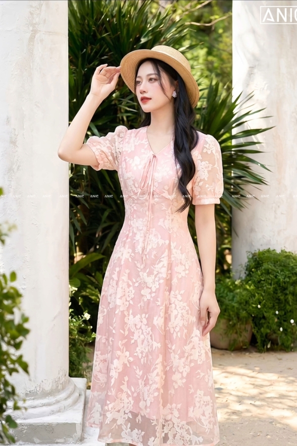 Đầm Tơ Hồng Hoa Nữ Tính - AN2685