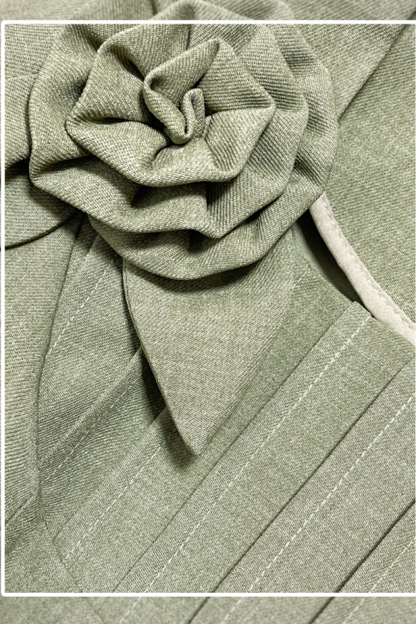 Đầm Xanh Kết Hoa Tết Đai Eo