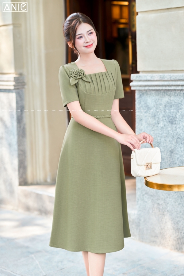 Đầm Xanh Kết Hoa Tết Đai Eo - AN2618