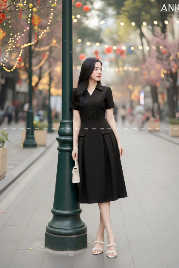 Đầm Xếp Ly 2 Túi Ánh Đen - AN2638