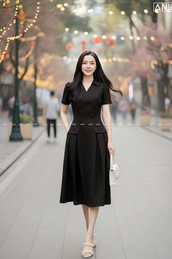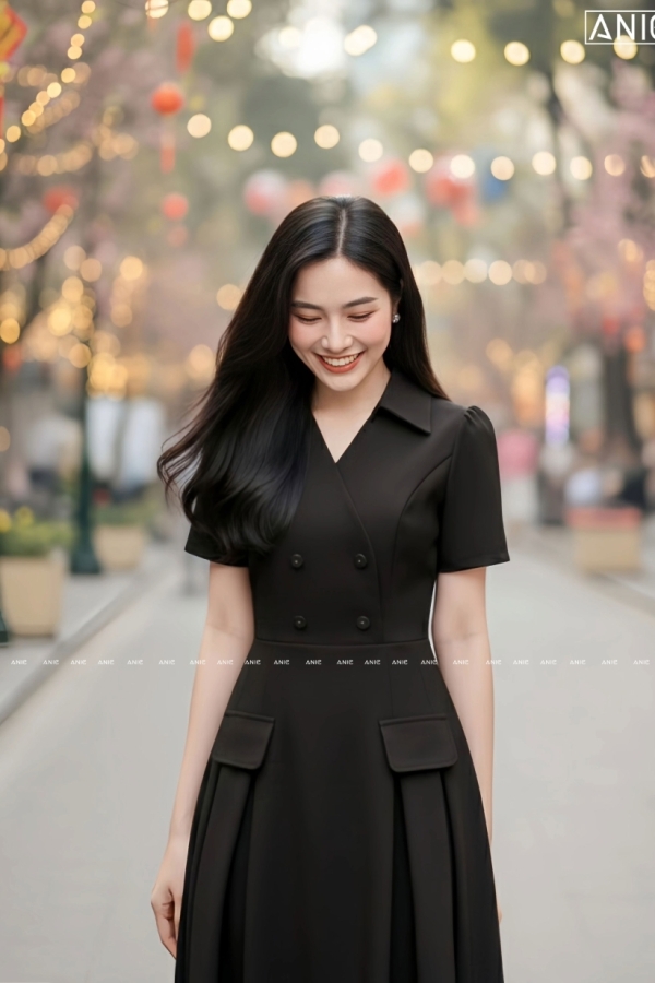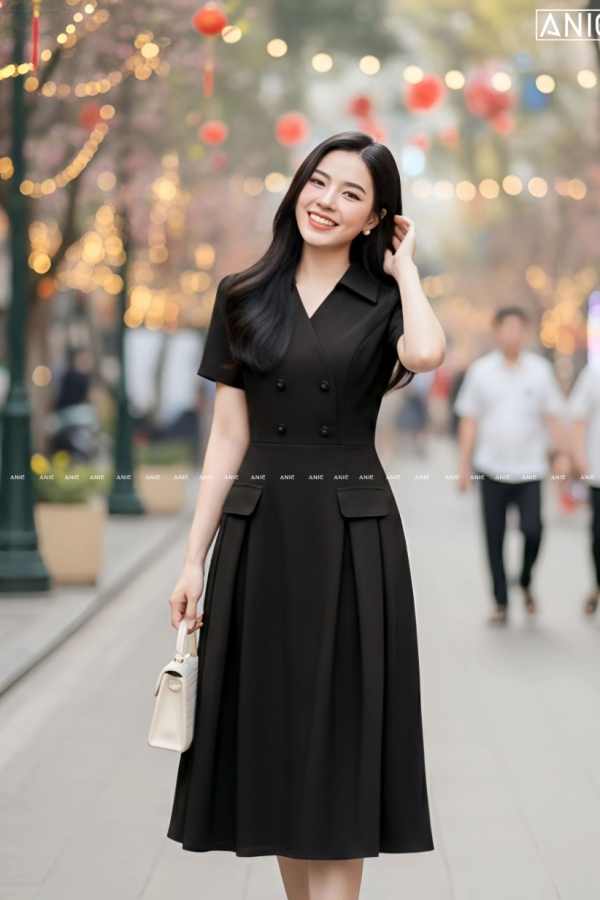 Đầm Xếp Ly 2 Túi Ánh Đen