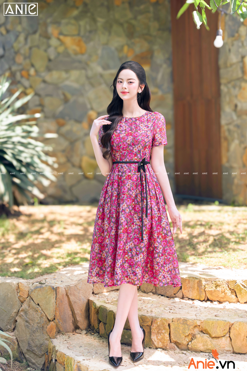 Form xòe rũ tôn dáng, bảng nơ đen đai khéo léo tạo eo thon, hoa đai này cũng được làm thủ công hoàn toàn nàng nha! 2 lớp tự tin dễ chịu di chuyển thư thái!
