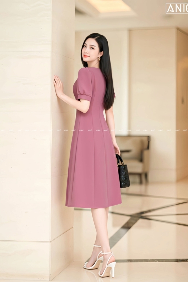 Đầm Xoè Tay Bồng Dây Khoá - AN2616