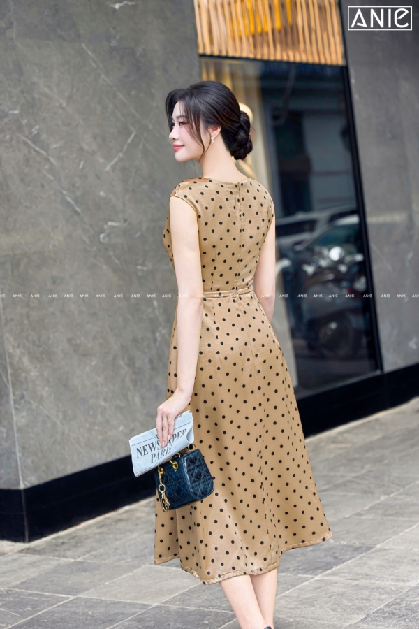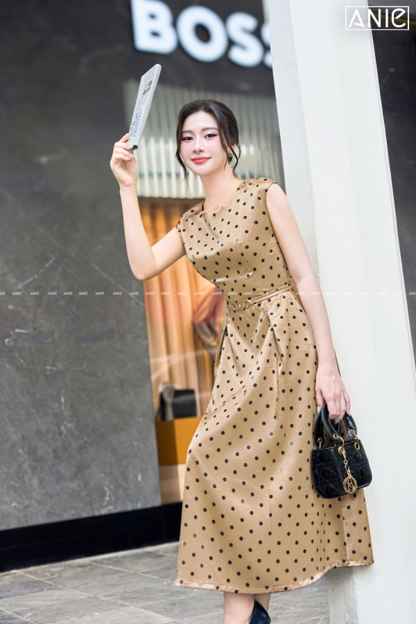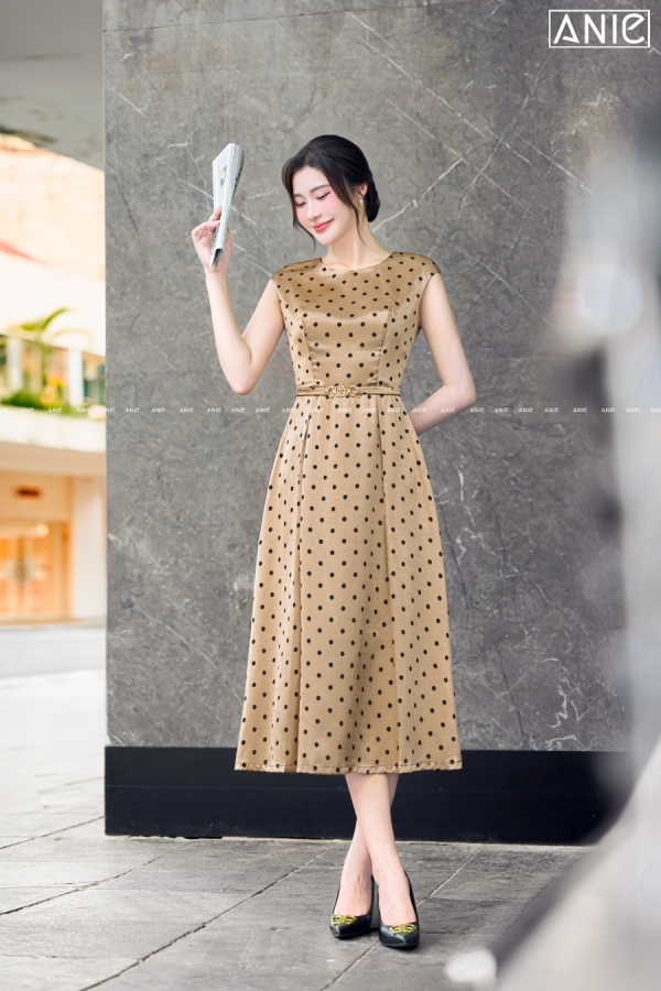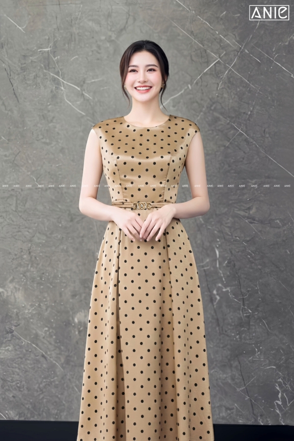 Đầm Dáng Dài Chấm Bi Cổ Điển - AN2606