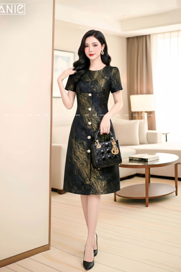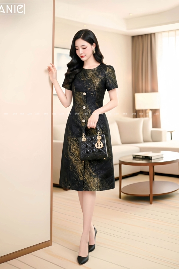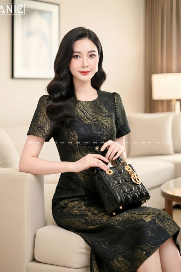 Đầm Tafta Loang Nhũ Vàng - AN2647