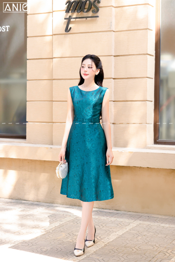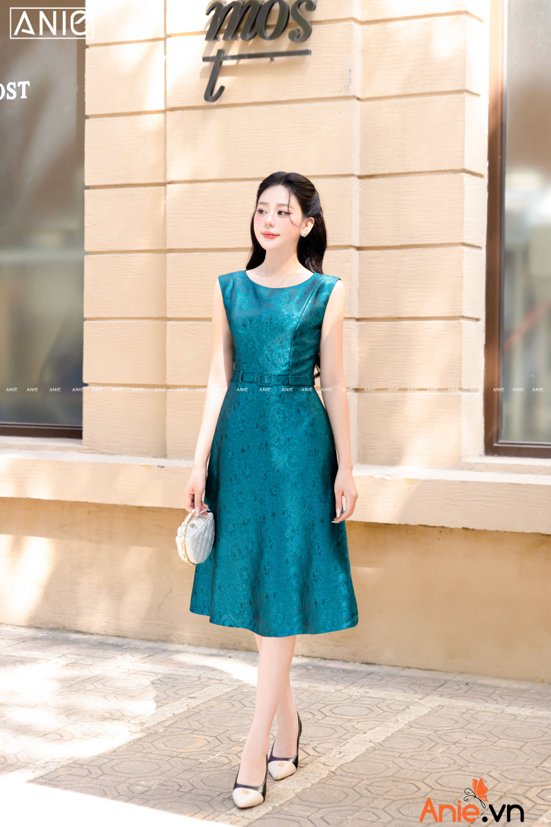Đầm Xoè Gấm Xanh Emma - AN2576
