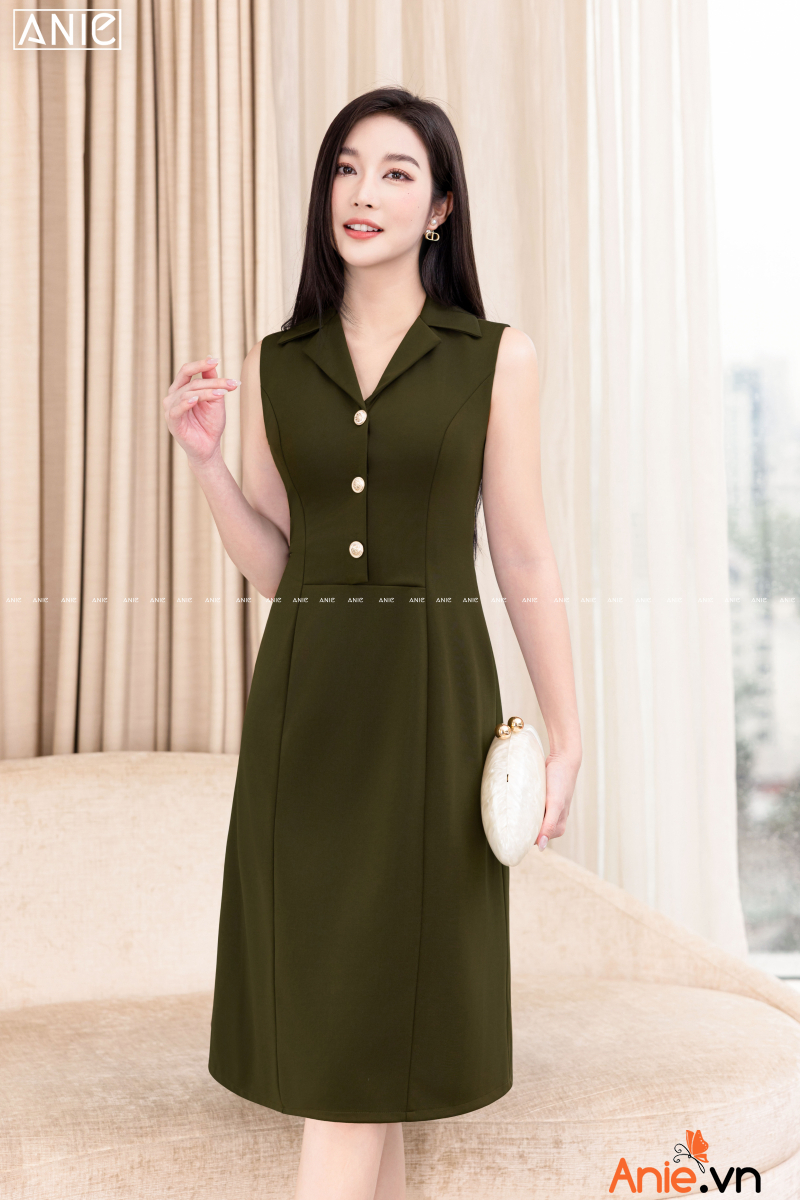 Đầm Rêu Cổ Vest Ivy - AN2575