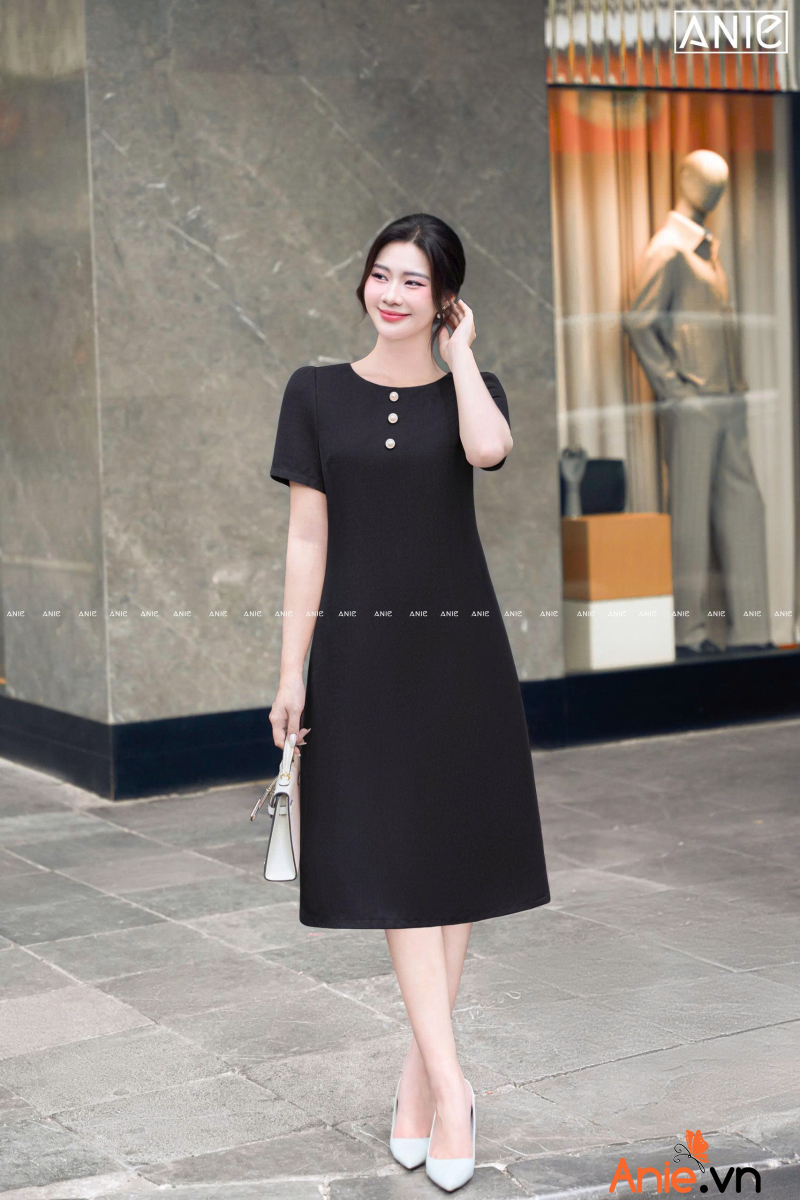 Thướt vải tạo hình dệt chéo lạ mắt đẹp lắm luôn, thoáng dai và đanh, điểm cúc để trông chị yêu tươi tắn trẻ trung hơn!
