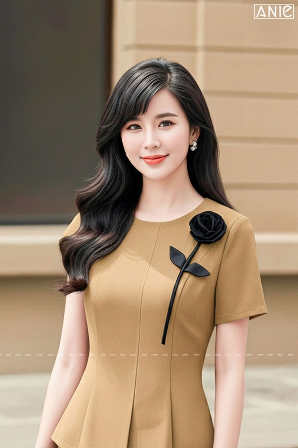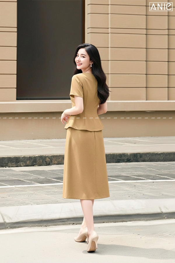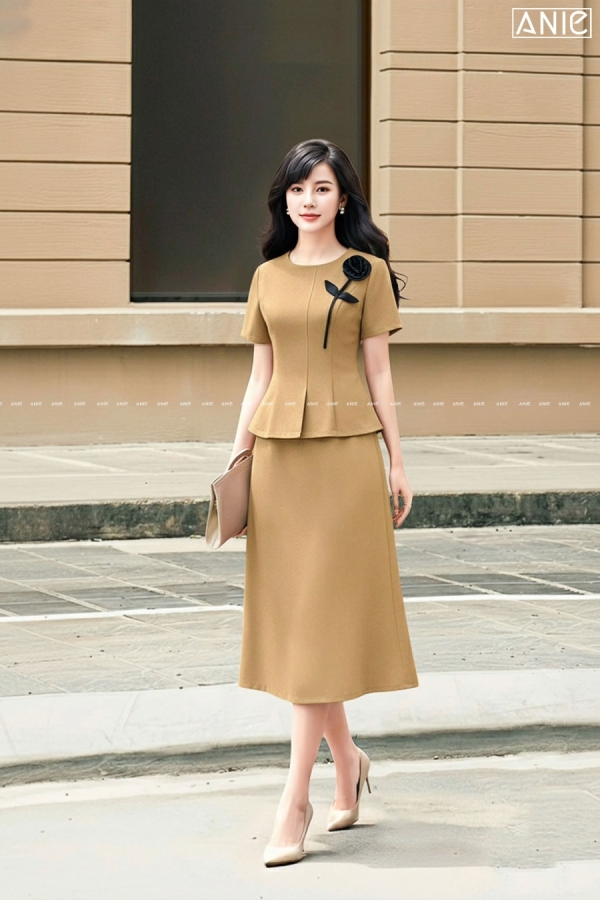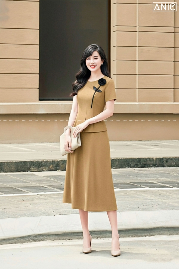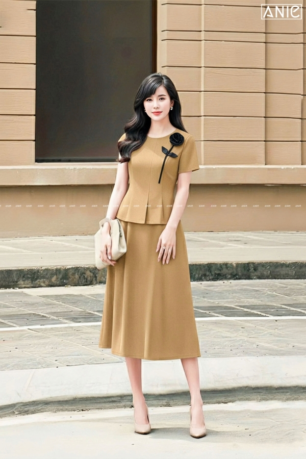SET Áo Váy Nâu Vani Kết Hoa - AN2596