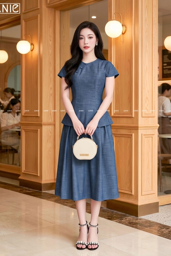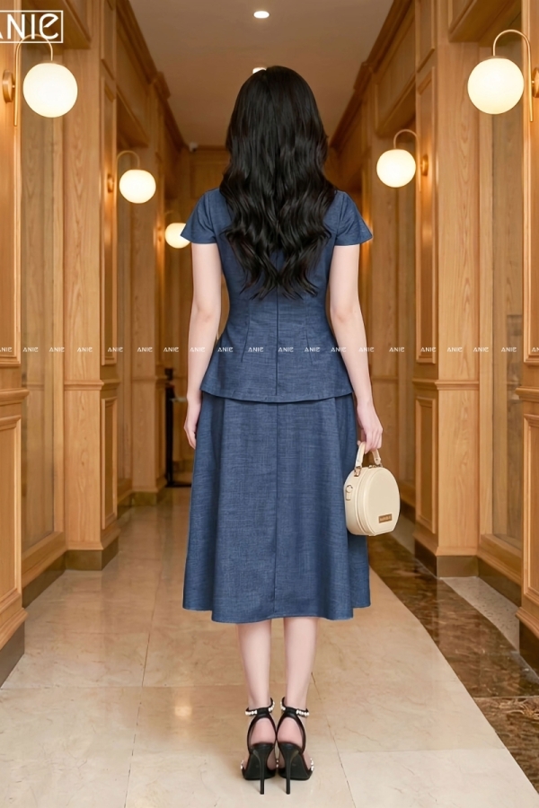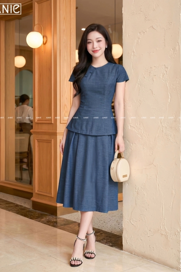 Set Bộ Áo Váy Xanh Xám Lury - AN2654