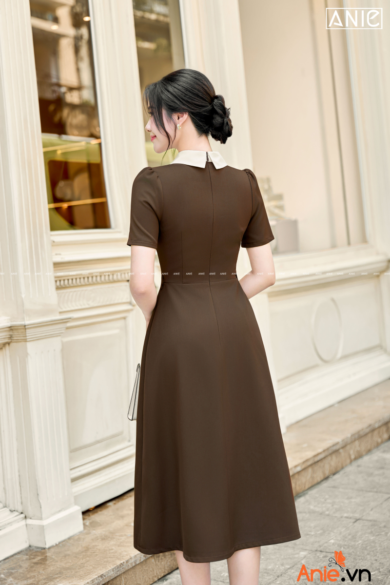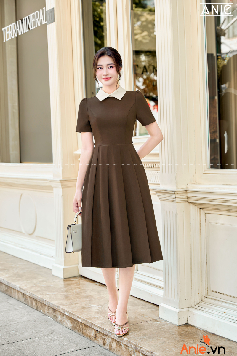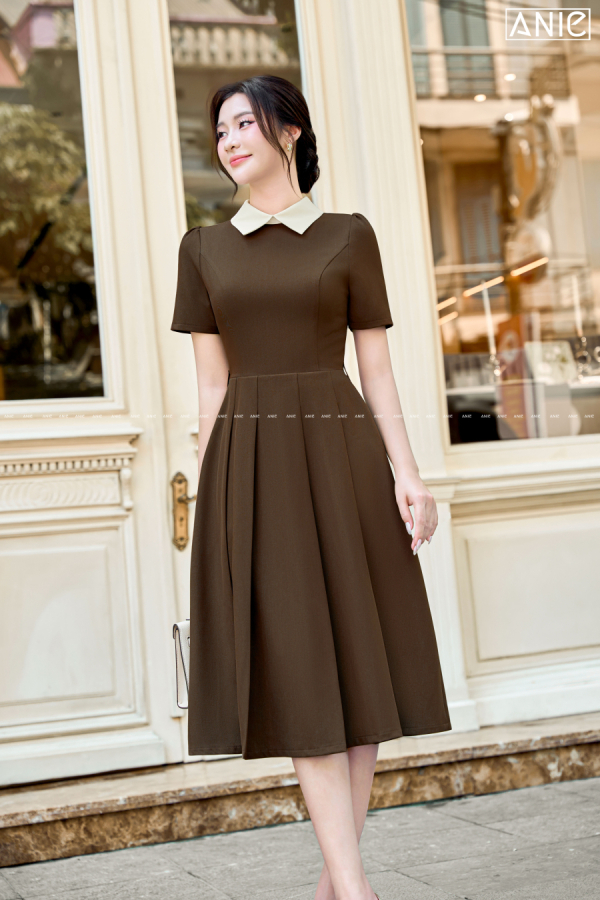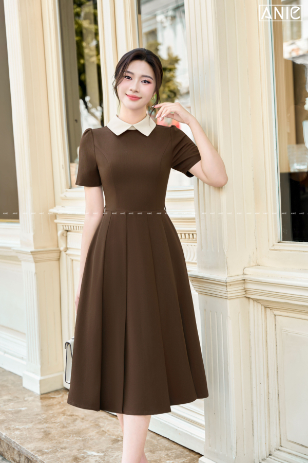 Đầm Cổ Trắng Phối Nâu Choco - AN2578