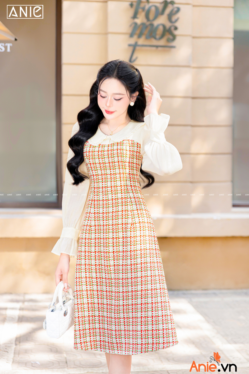 Đầm Cổ Nơ Xếp Ly Thanh Xuân