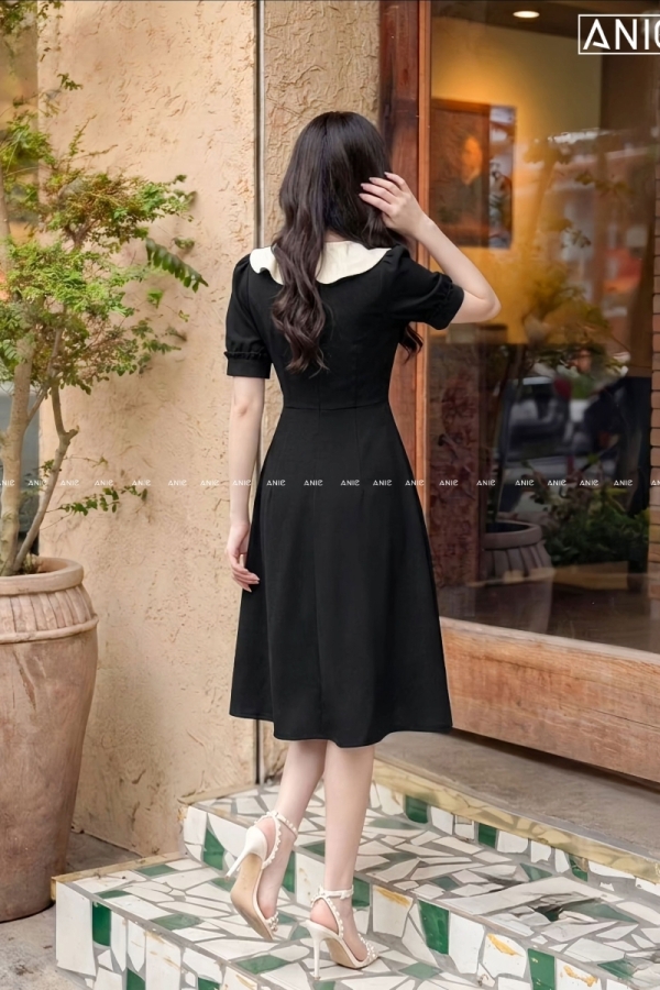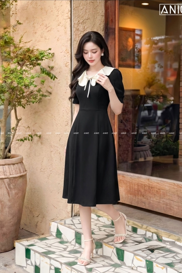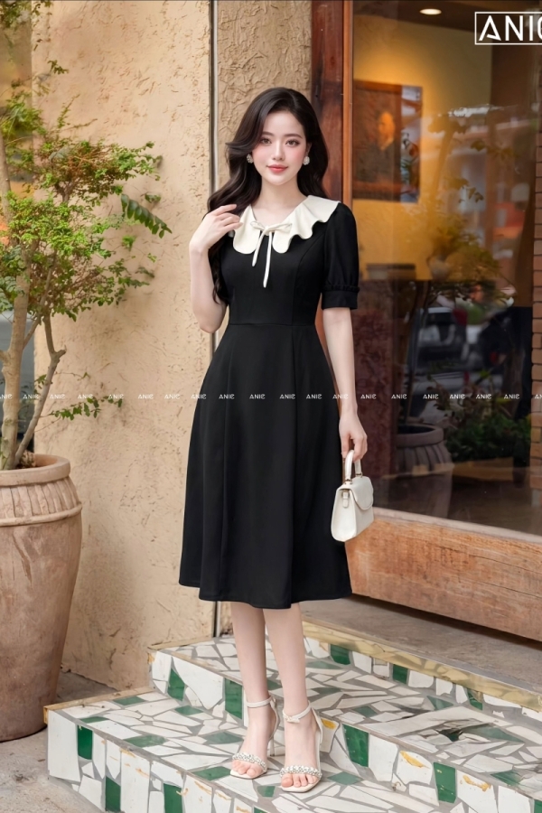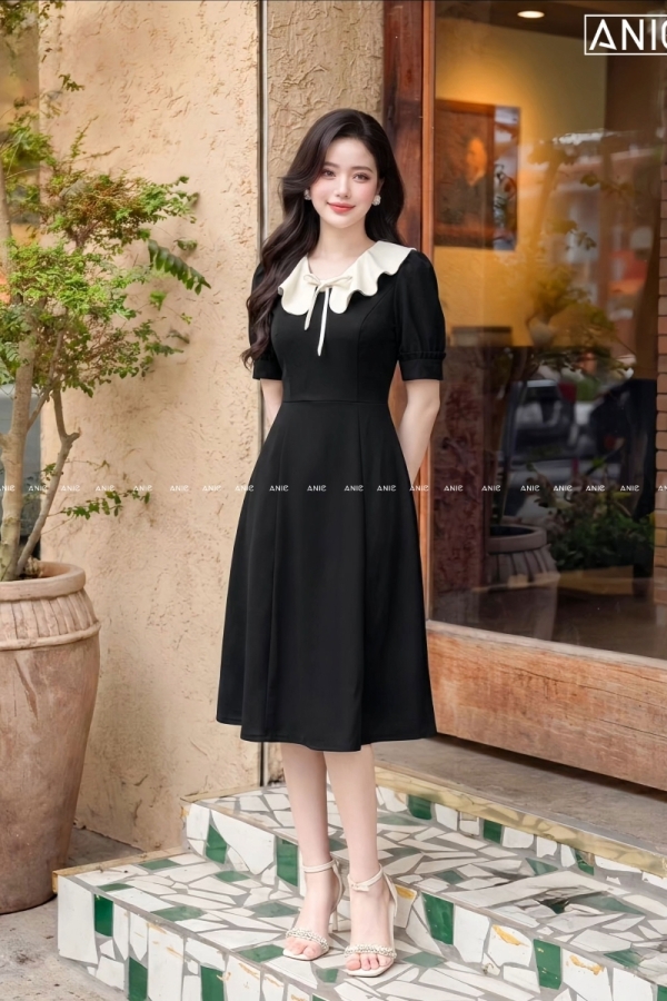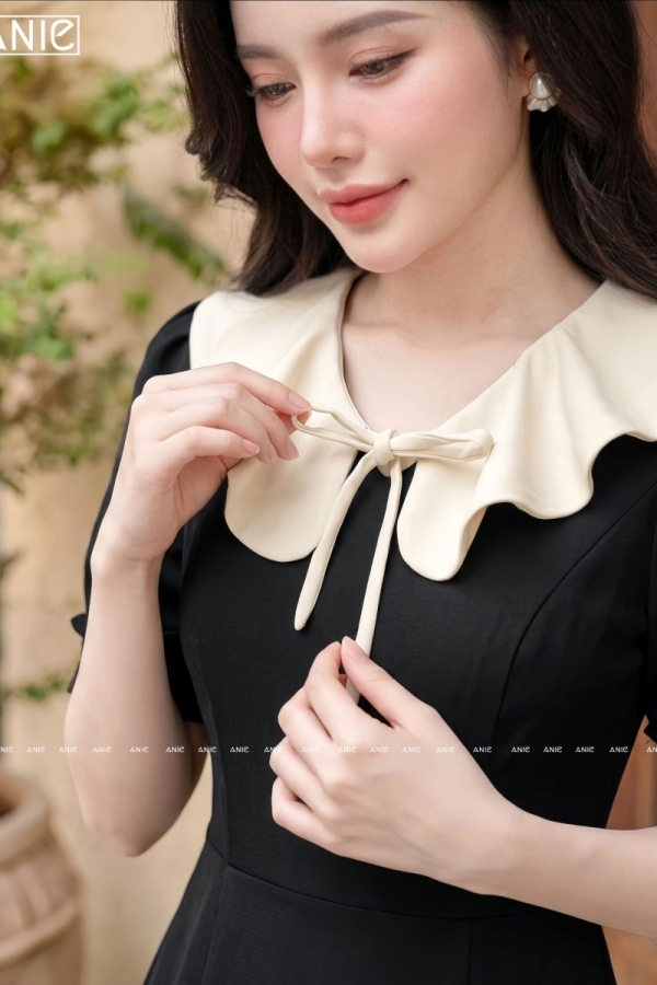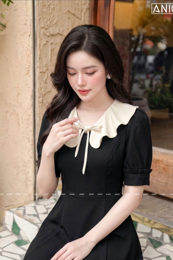 Đầm Đen Tay Bồng Nơ Bèo - AN2689