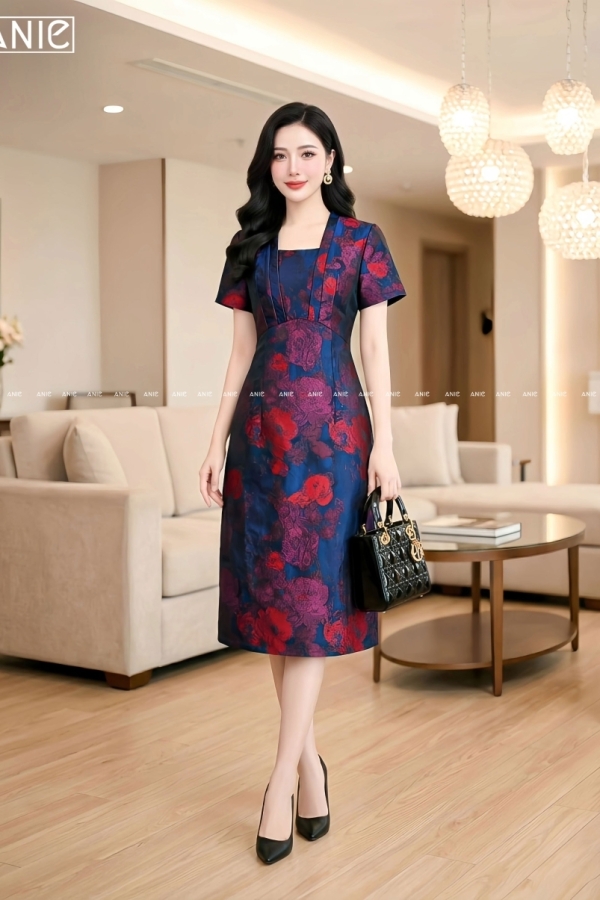 Đầm Gấm Hoa Loang Galaxy - AN2649