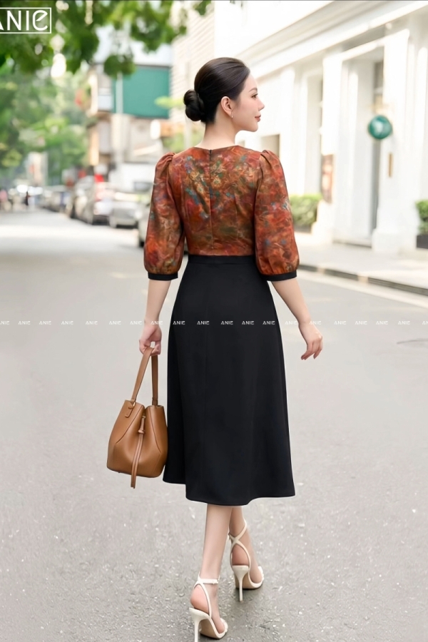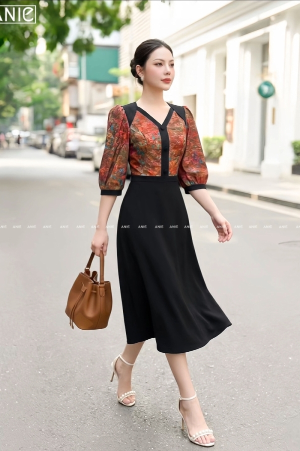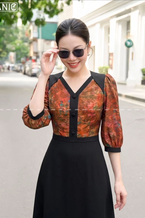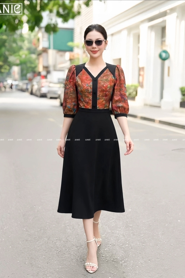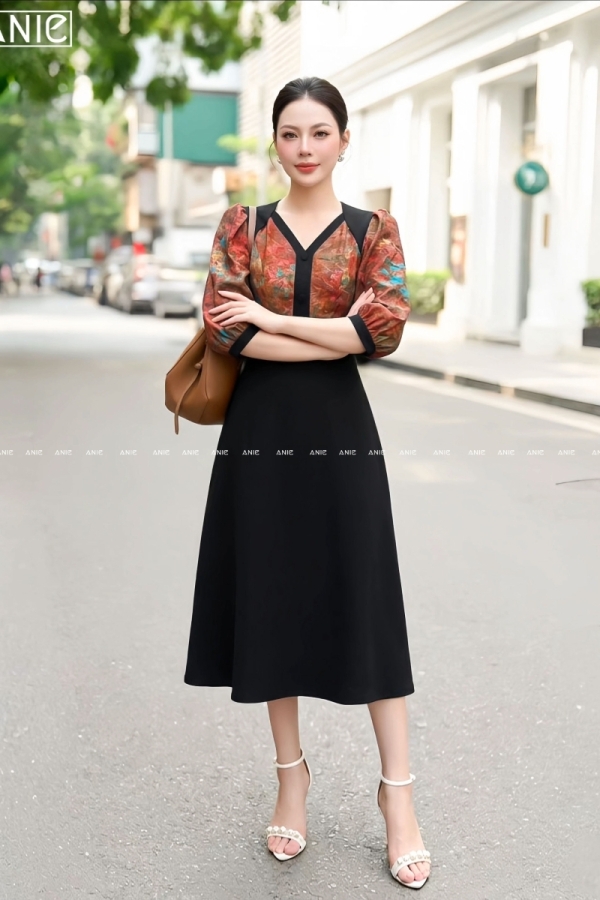 Đầm Liền Tay Lỡ Hoa Loang Viền - AN2686