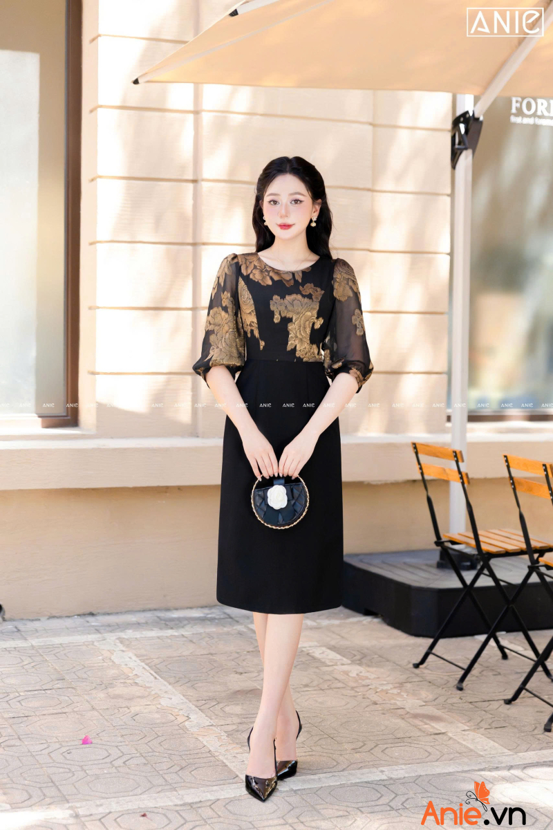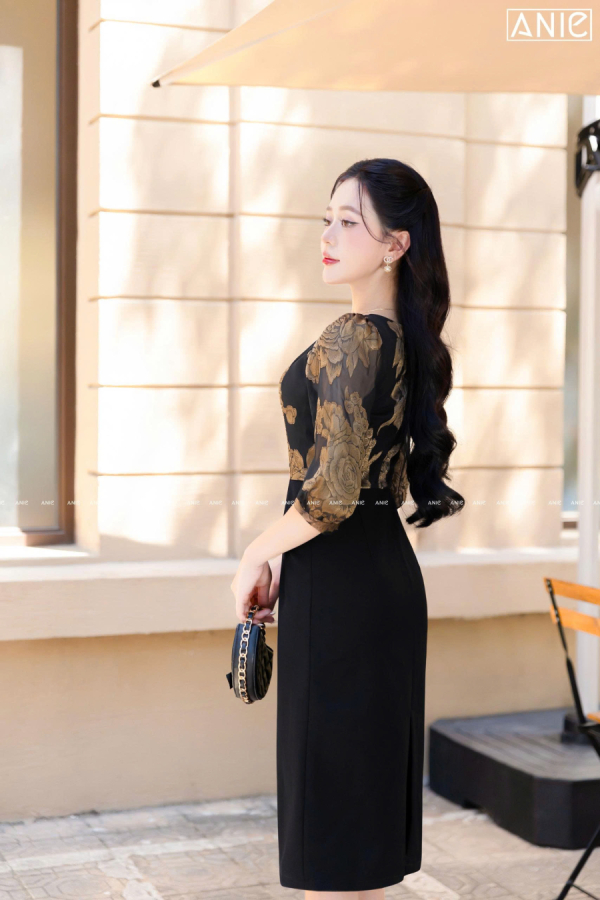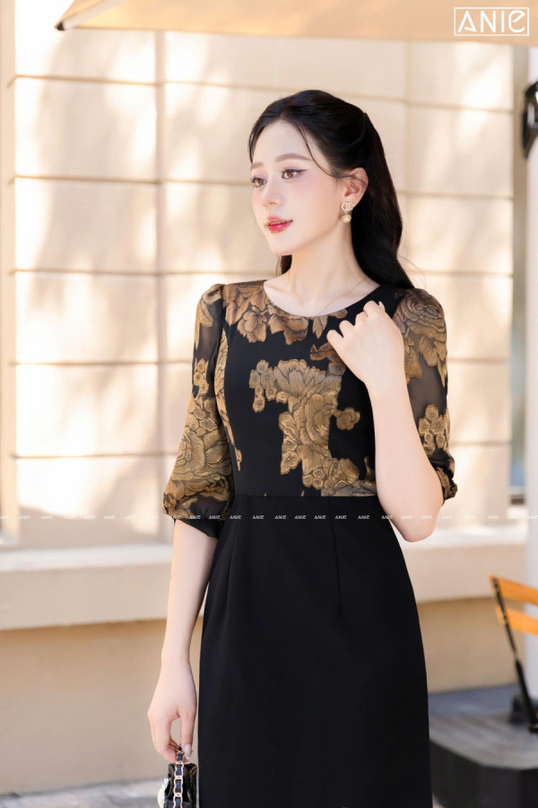 Sử dụng thướt tơ thêu hoa văn tone ánh nâu đồng bắt sáng mềm mại có lót, tùng váy mịn dày dặn co giãn form chuẩn, chiếc đầm được rã eo tạo dáng thon cao hẳn cho nàng mà còn có tone đen nữa thì quá SANG XỊN GỌN ĐẸP rồi ạ!