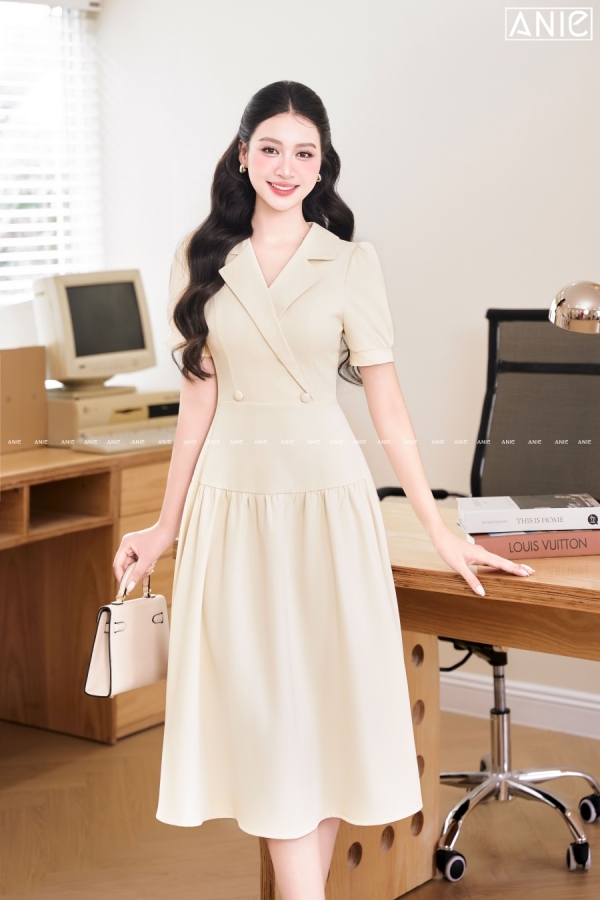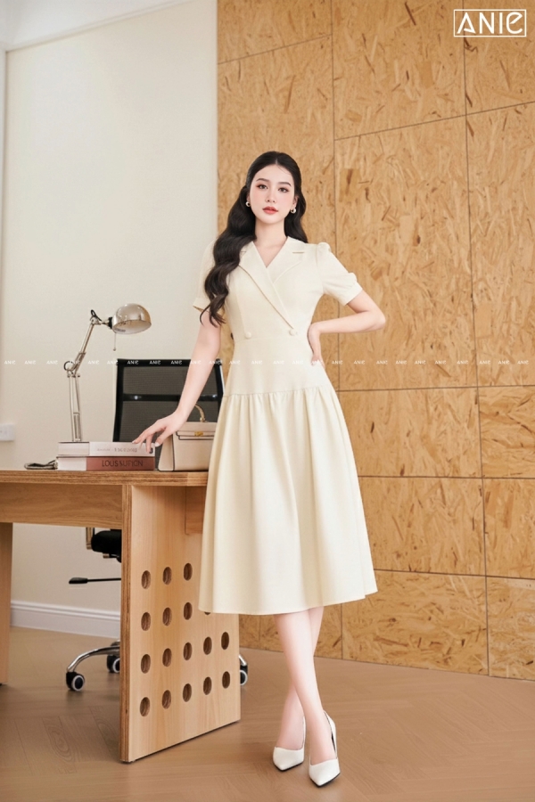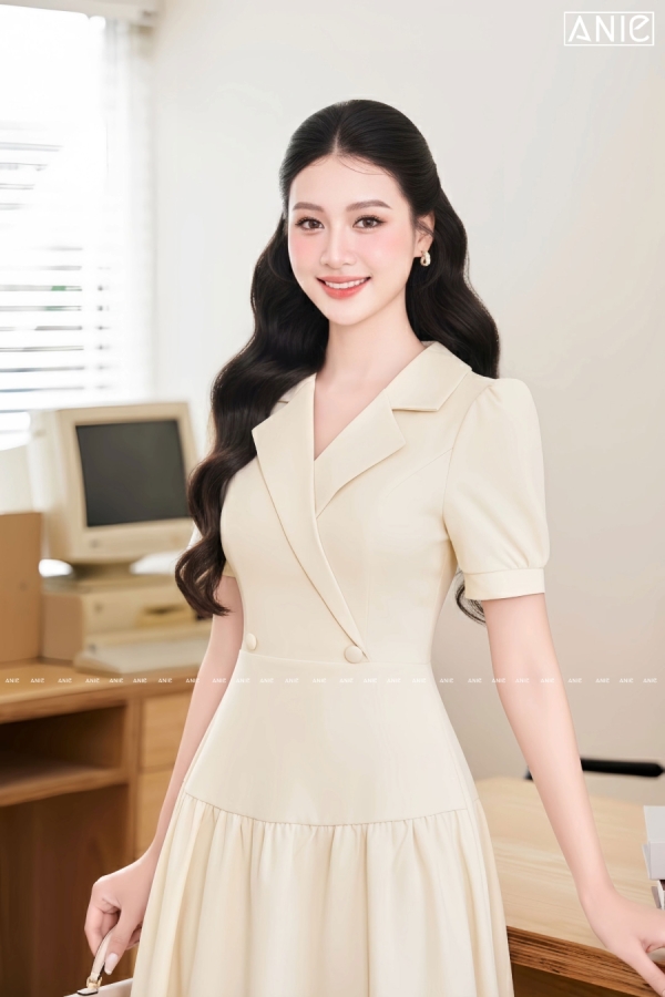 Đầm Tay Bồng Vest Kem Xoè - AN2602