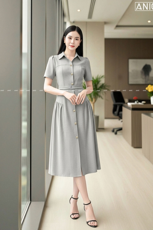 Đầm Xám Tùng Xoè DaiLy - AN2608