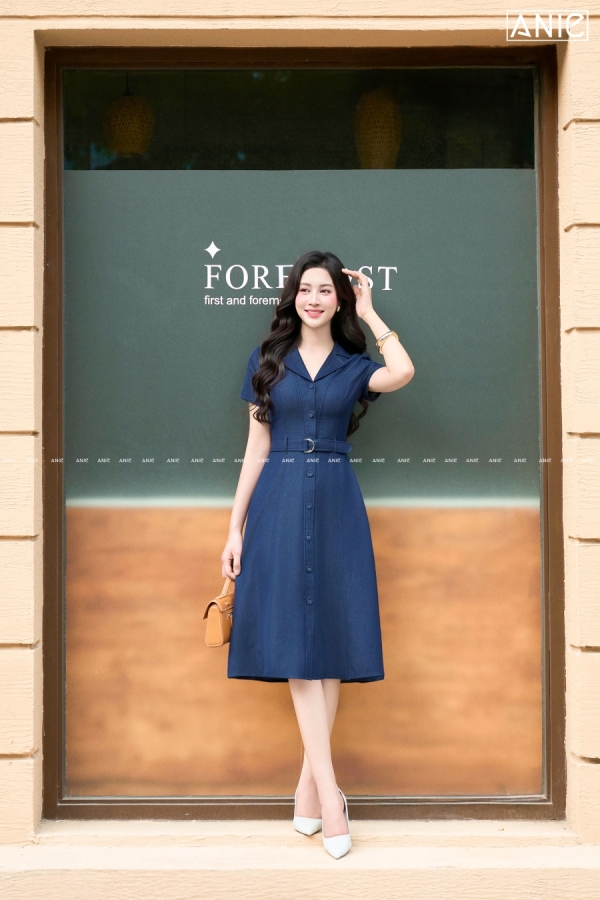 Đầm Xanh Denim Cổ Sơ Mi - AN2607