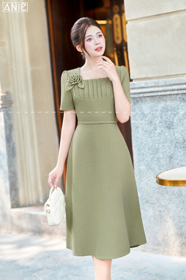 Đầm Xanh Kết Hoa Tết Đai Eo - AN2618