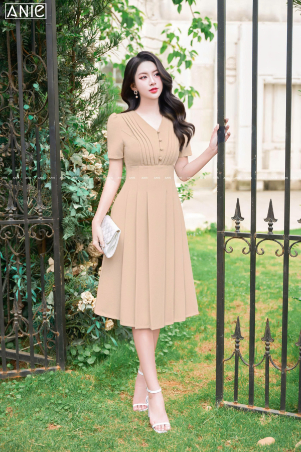 Chú trọng vào chi tiết và form đầm, ANIE khéo léo lồng ghép điểm xếp ly con phần thân giảm bề ngang vai cho nàng hiệu quả - tôn V1 đầy đặn, rã eo cao cùng 7 bảng xếp ly to giấu khuyết điểm tuyệt vời - trông chị yêu uyển chuyển hơn khi mặc!