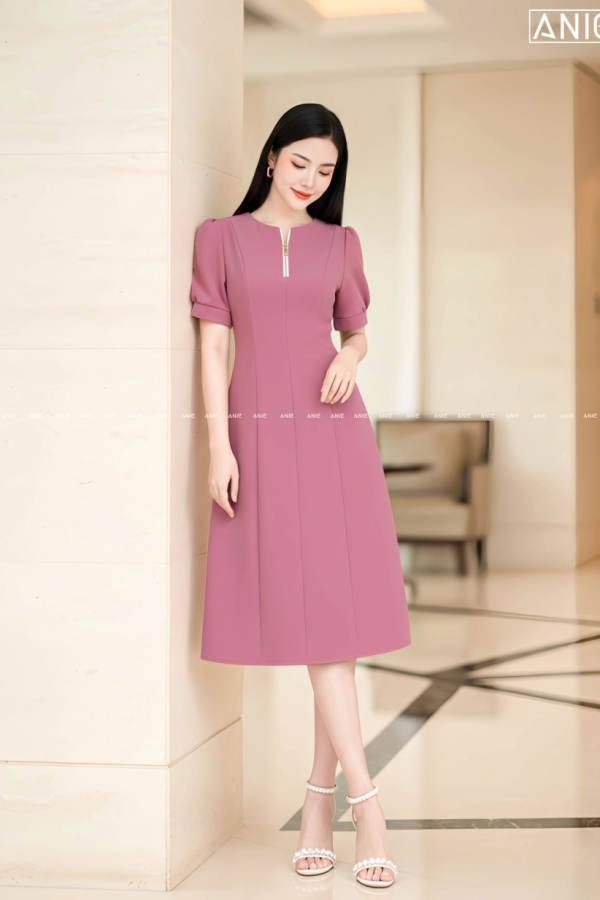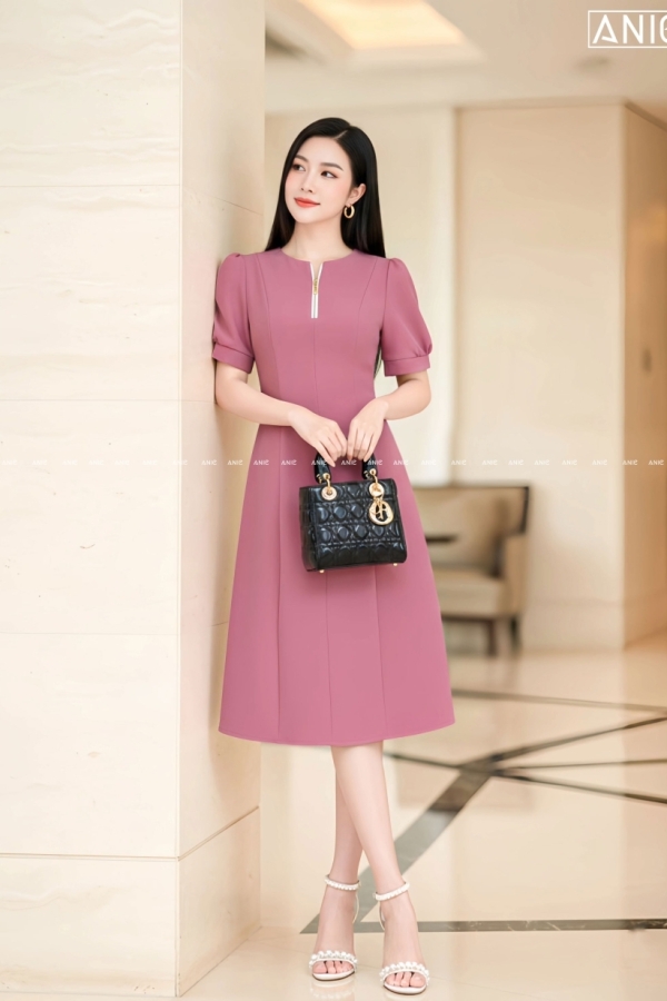 Đầm Xoè Tay Bồng Dây Khoá - AN2616