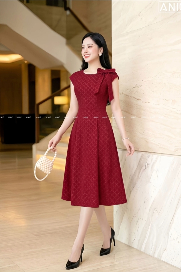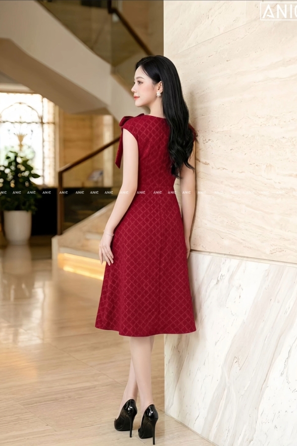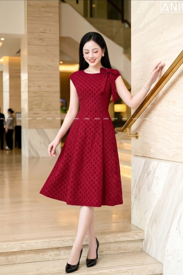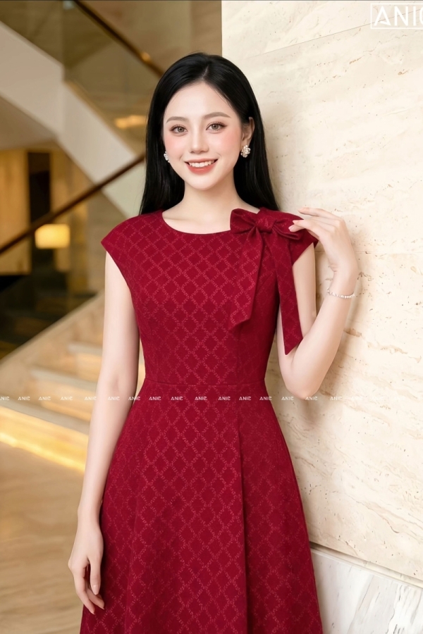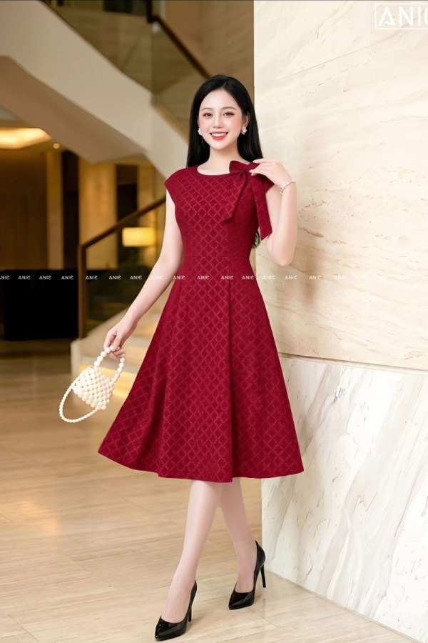 Đầm Đỏ Vân Đính Nơ - AN2675