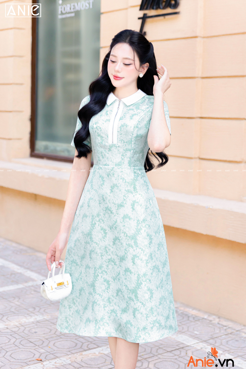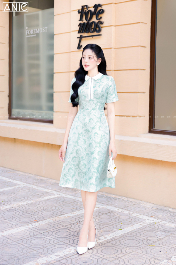 Đầm Xoè Lụa Hoa Vân Gỗ