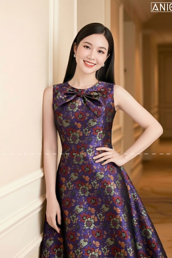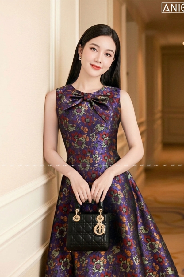 Đầm Tiệc Gấm Tím Hoa Nơ - AN2609