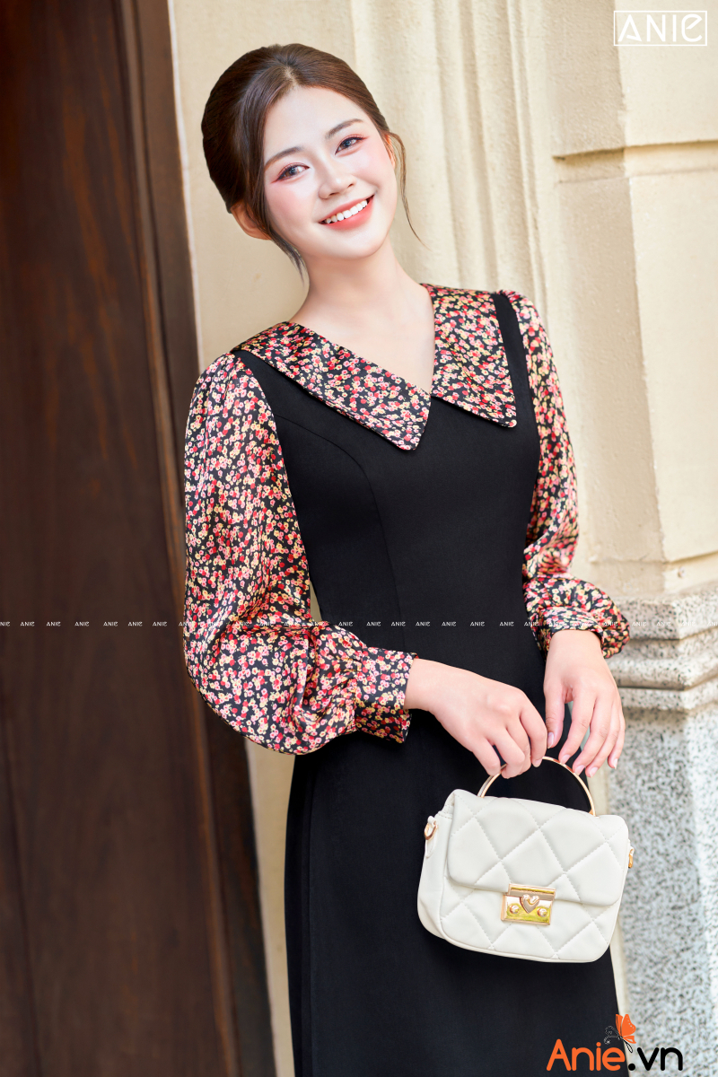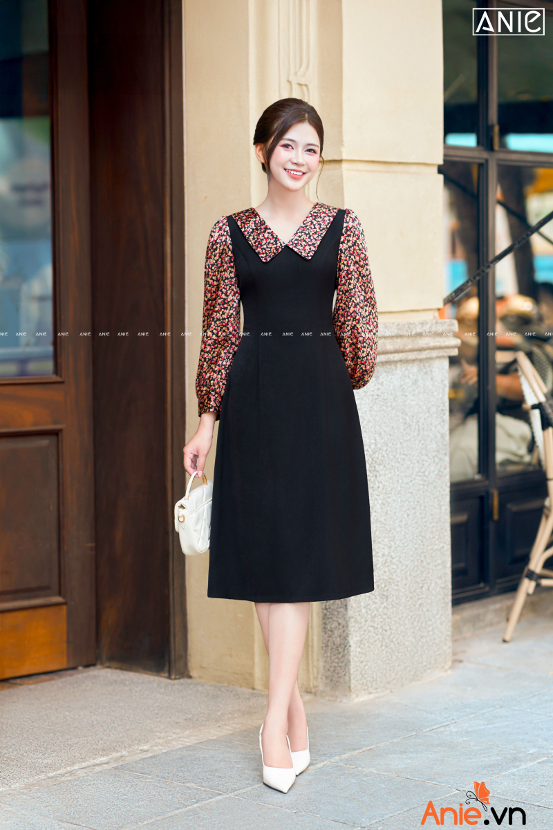 Tên sản phẩm: Đầm Đen Tay Dài Hoa Nhí Liti