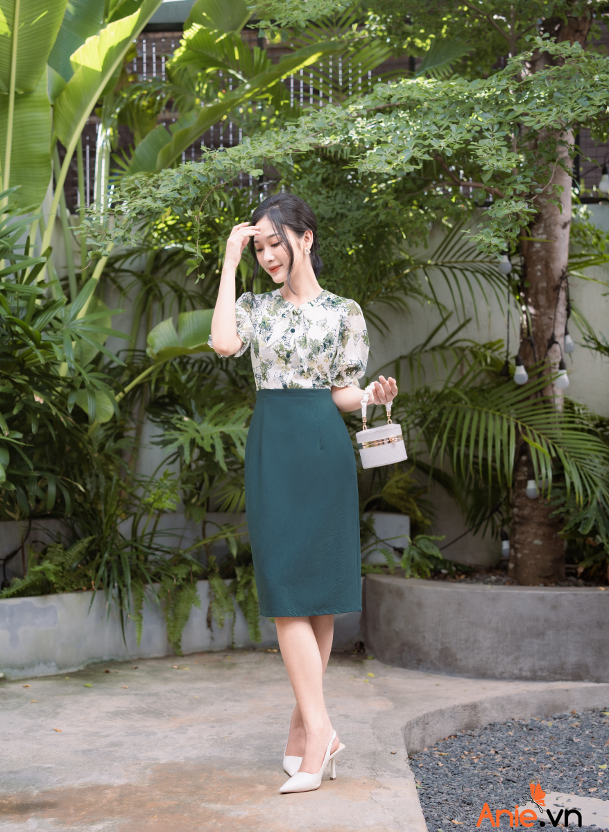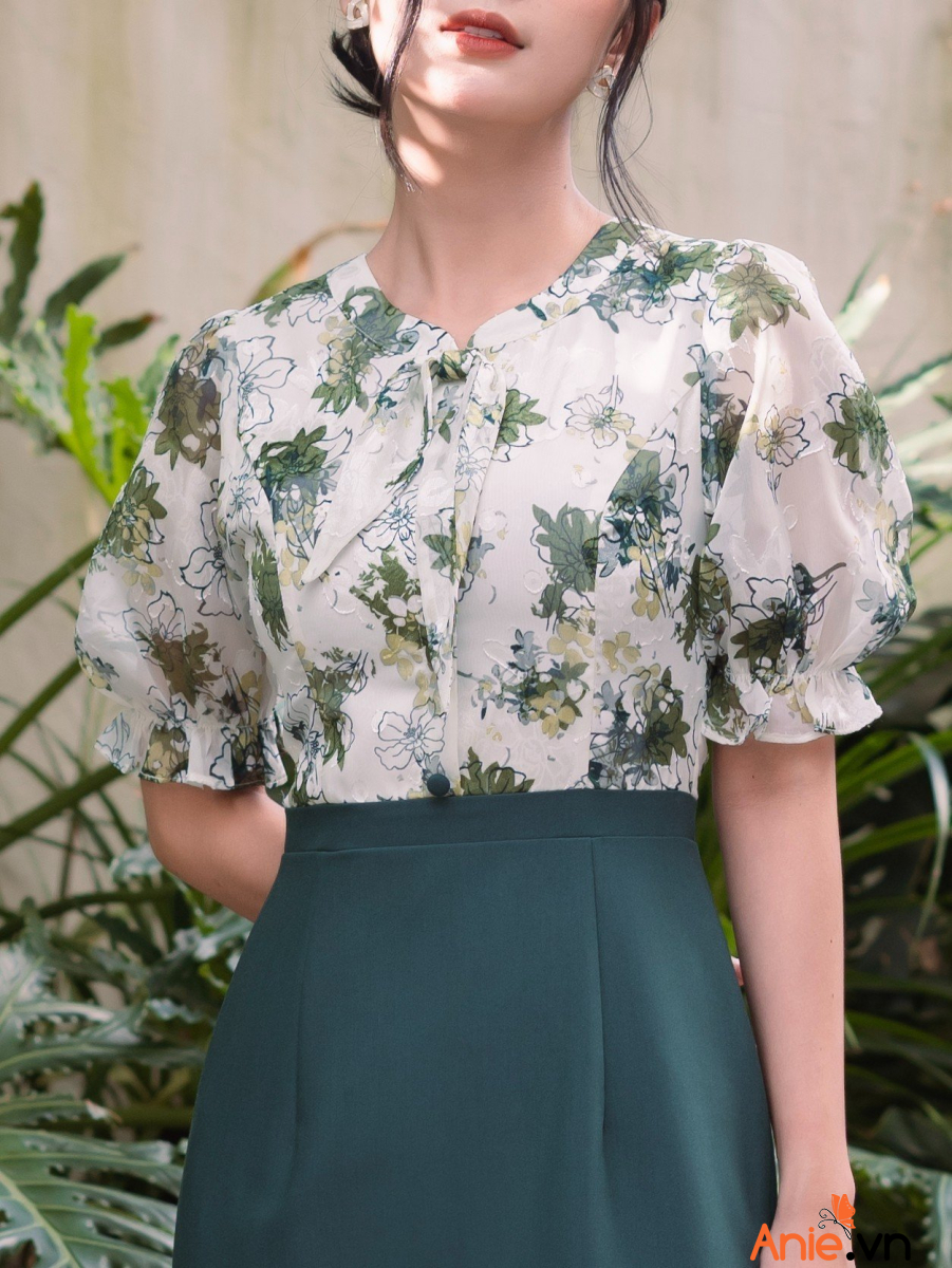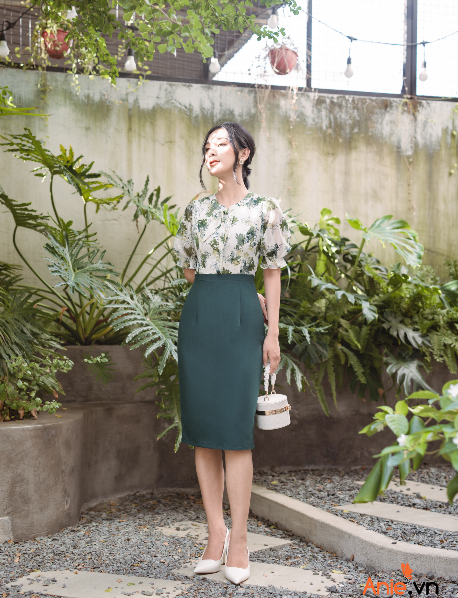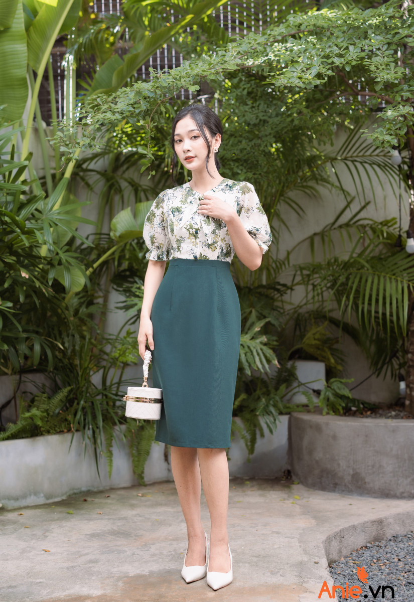 Những sắc hoa xanh nổi đang đua nhau khoe sắc trên chiếc đầm công sở đem đến hiệu ứng thị giác dễ chịu mát mắt mà còn mang theo vẻ đẹp trẻ trung năng động với điểm nhấn thắt nơ xinh xắn điệu đà mix cùng tay nhúm bồng bềnh bay bổng cảm giác cực chill. Chân đầm cùng sắc với cánh hoa sẵn sàng cân mọi tông da và toát thần thái sang chảnh trong nét điệu dành cho các quý cô nhà Anie!