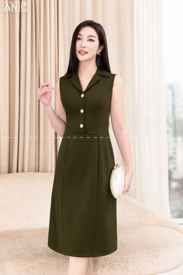 Đầm Rêu Cổ Vest Ivy - AN2575