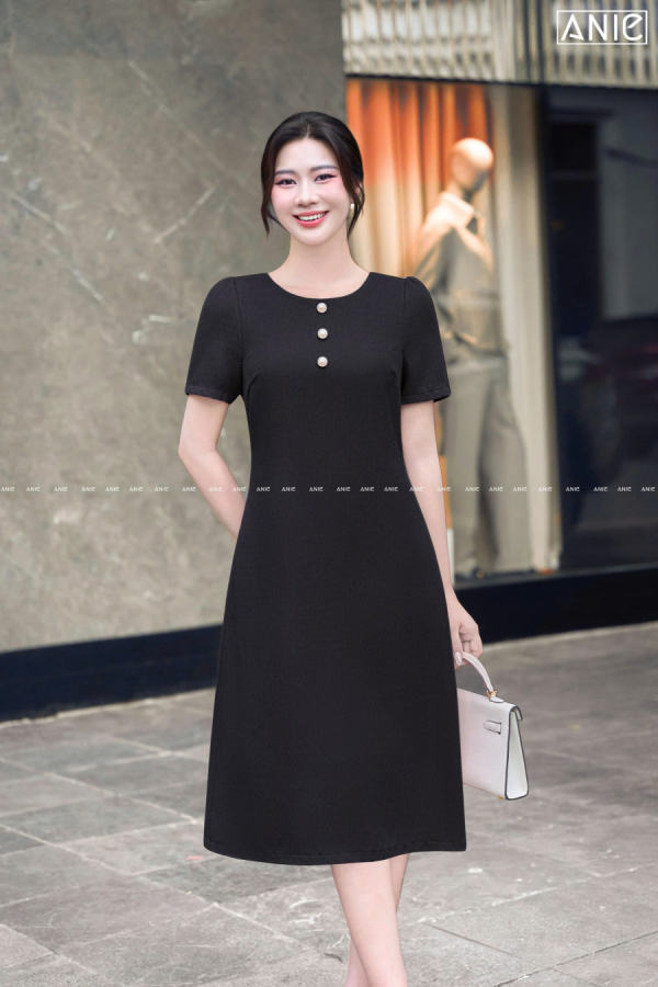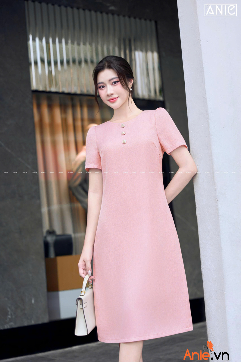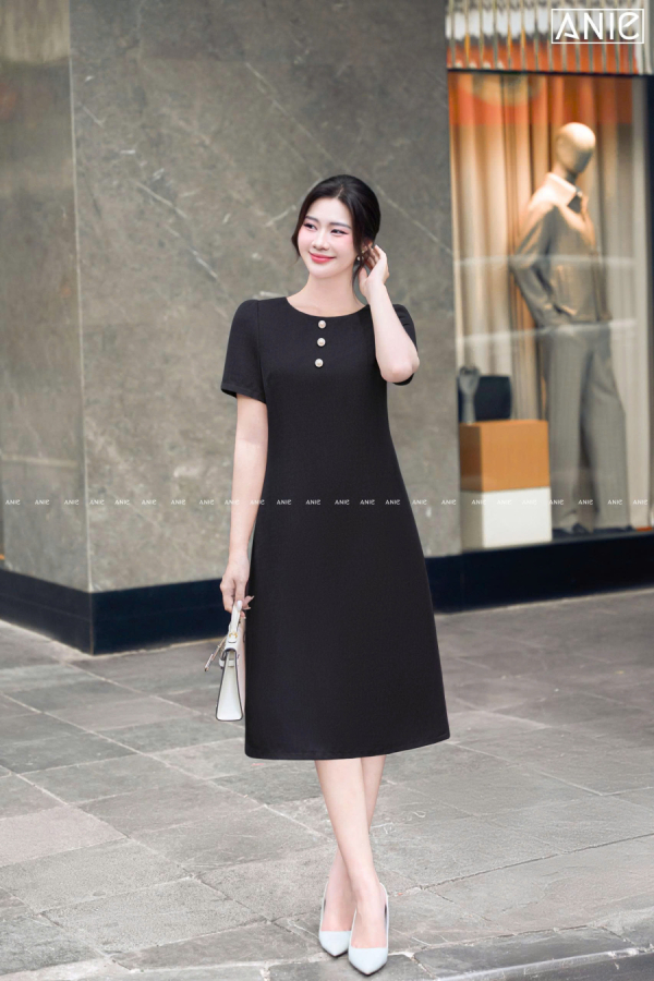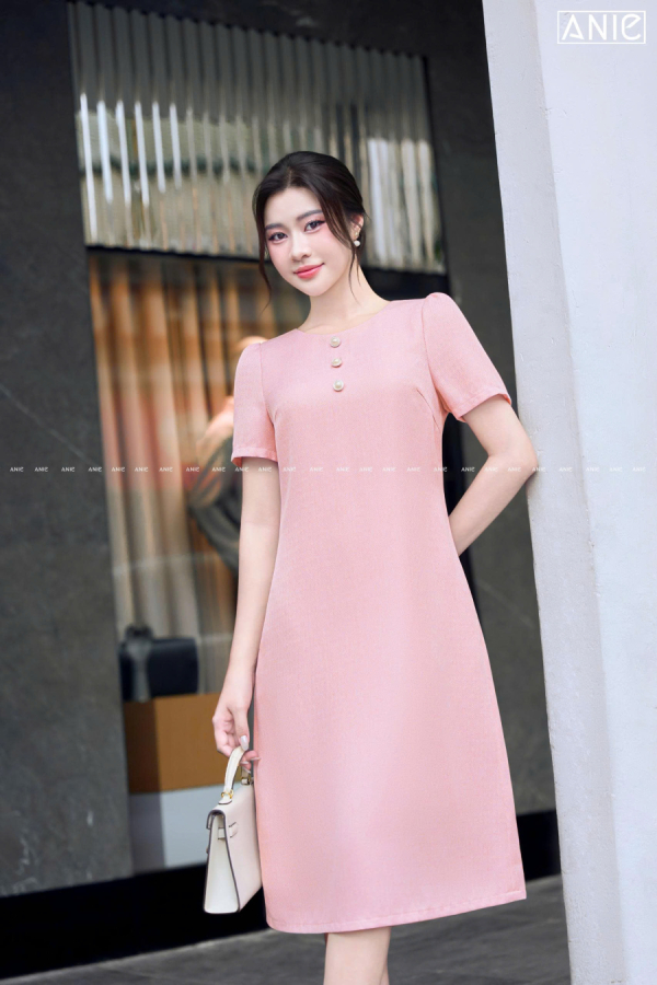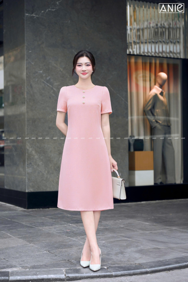 Thướt vải tạo hình dệt chéo lạ mắt đẹp lắm luôn, thoáng dai và đanh, điểm cúc để trông chị yêu tươi tắn trẻ trung hơn!