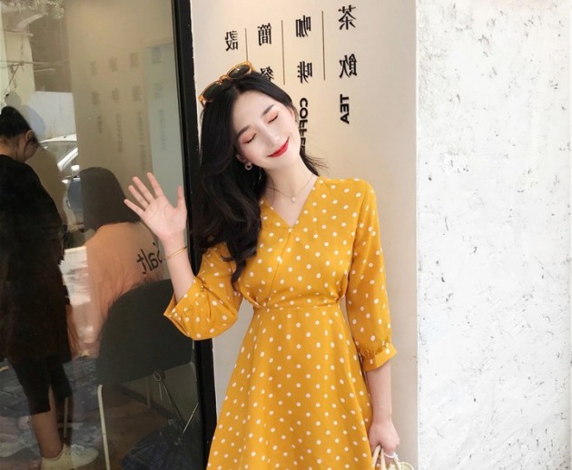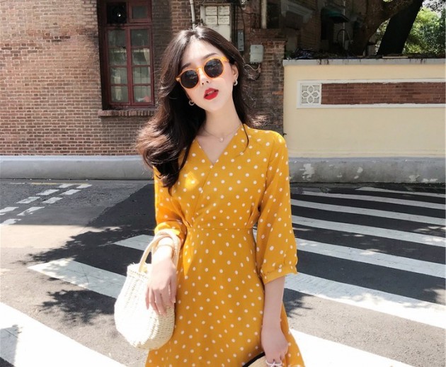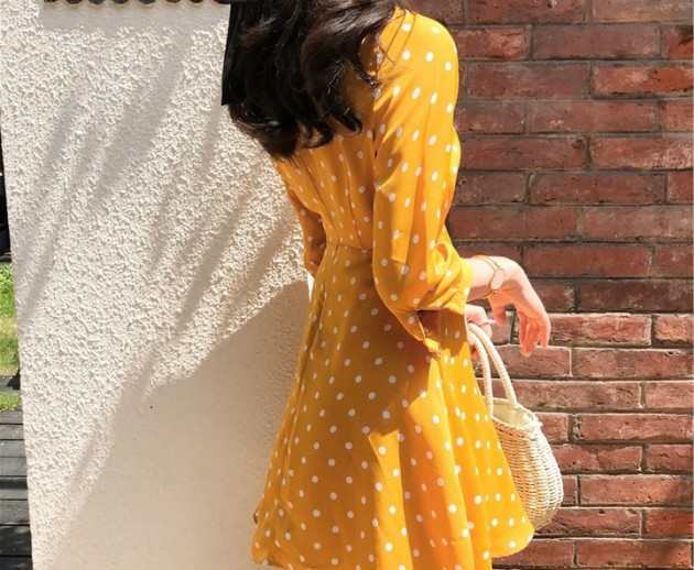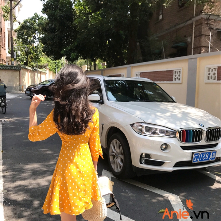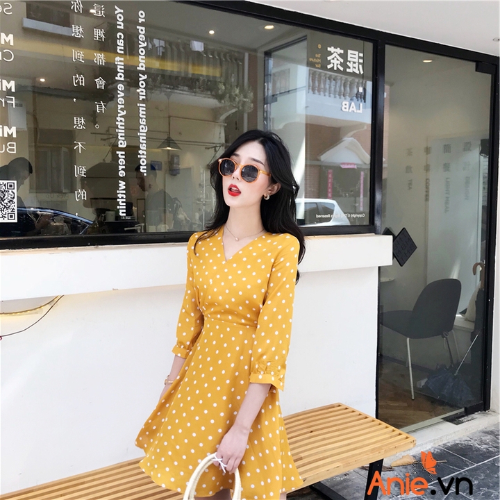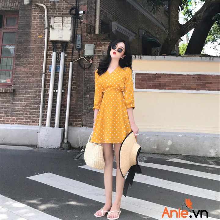 ✓ Thể hiện sự duyên dáng, form dáng hoàn hão. chấm bi vàng duyên dáng